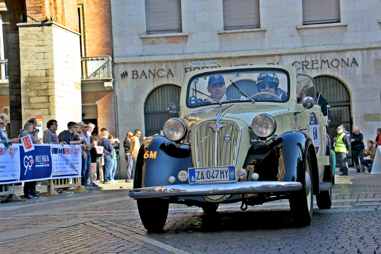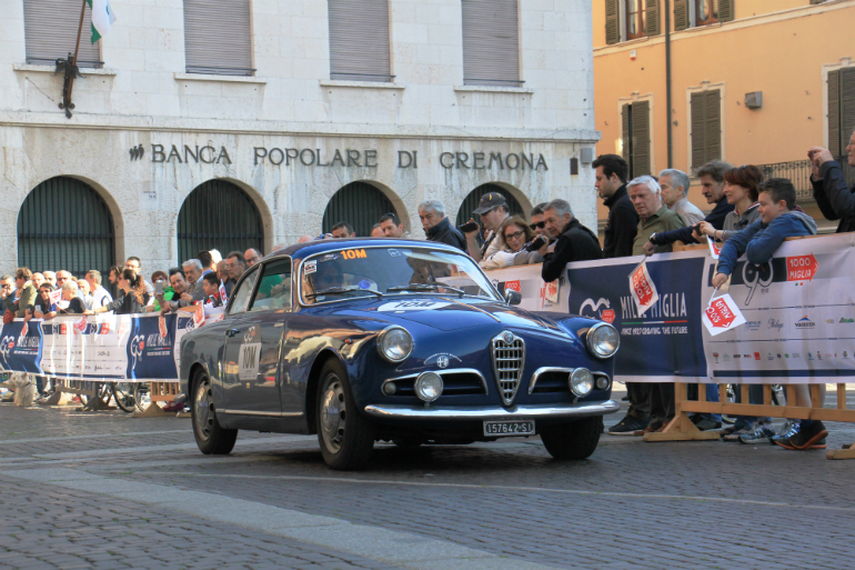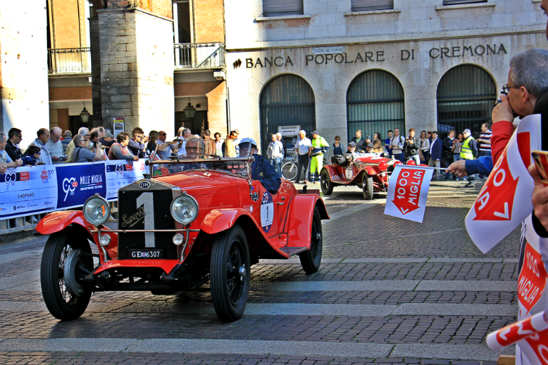 Mille Miglia, passaggio trionfale sotto il Torrazzo fin dalla prima mattina