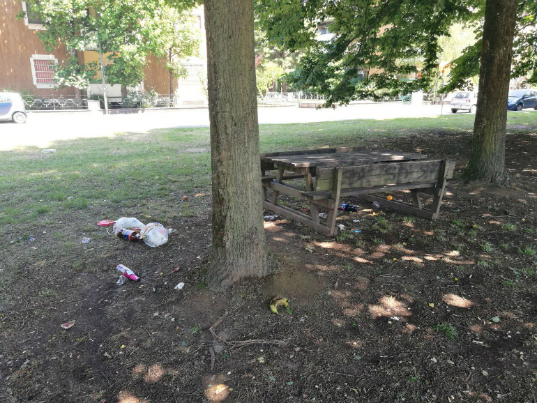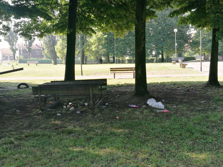 Parco Sartori, incuria e rifiuti abbandonati nel verde