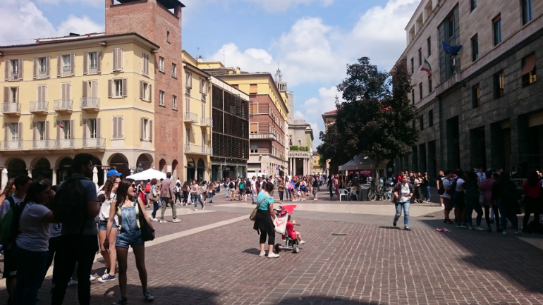 Folla di studenti questa mattina in centro a Cremona, in occasione della ormai tradizionale Festa delle Arti, promossa dalla Consulta studentesca e a cui hanno preso parte tutte le scuole di Cremona. Tra piazza Roma e piazza Stradivari due palchi montati per l’occasione hanno fatto da cornice alle numerose manifestazioni. Ai giardini si sono susseguiti gruppi musicali composti da giovani studenti, mentre in piazza Stradivari lo spazio è stato lasciato soprattutto allo sport: esibizioni di scherma medievale, ballo, hip hop, reaggeton, football, nonché numerosi stand espositivi di Amnesty International e InformaGiovani.