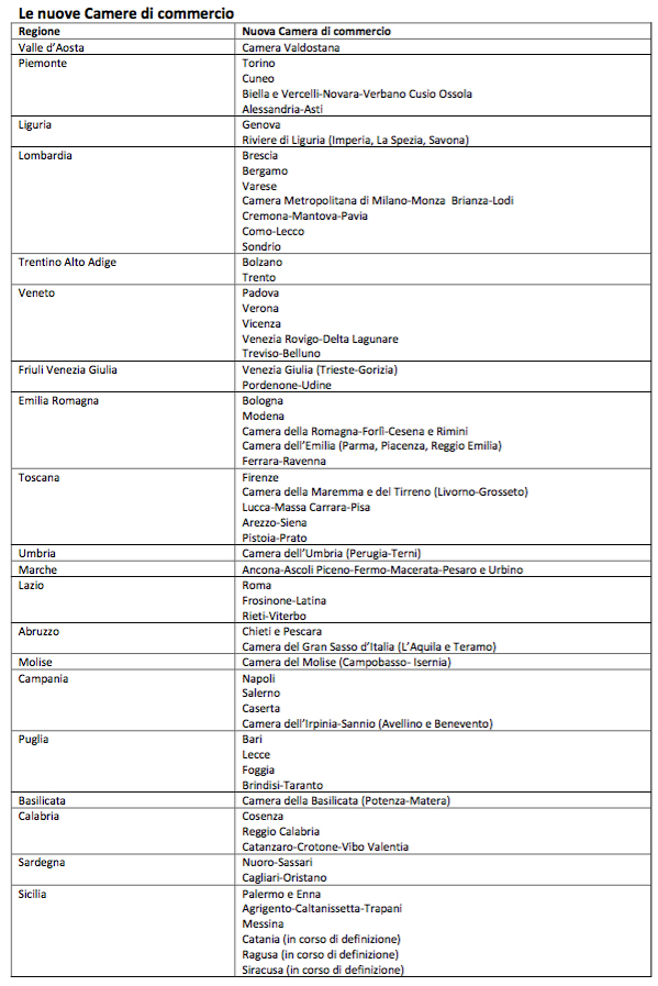 “La proposta, messa a punto da Unioncamere e approvata dall’Assemblea, recepisce i suggerimenti giunti da tutte le Camere al termine di un lungo lavoro di ascolto e di analisi delle diverse realtà territoriali”, commenta il presidente di Unioncamere, Ivan Lo Bello. “La razionalizzazione salvaguarda la presenza capillare del sistema camerale in un’ottica di crescita dell’efficienza e dell’efficacia dell’azione delle Camere. Tutto ciò anche per adempiere al meglio ai nuovi compiti e alle nuove funzioni che la riforma ci affida”.