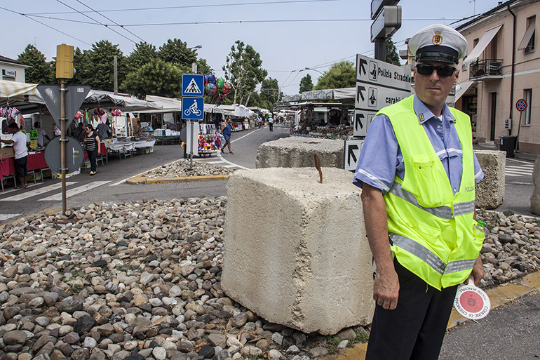 Città blindata in queste giornata ricche di eventi: le minacce terroristiche in tutta Europa hanno innalzato negli ultimi mesi il livello di guardia anche in Italia: a Cremona si era già iniziato il 31 dicembre scorso, con la festa di Capodanno in piazza, ma ormai i blocchi di cemento sono diventati una presenza costante, soprattutto in questa stagione, dove molte iniziative ravvivano la città.