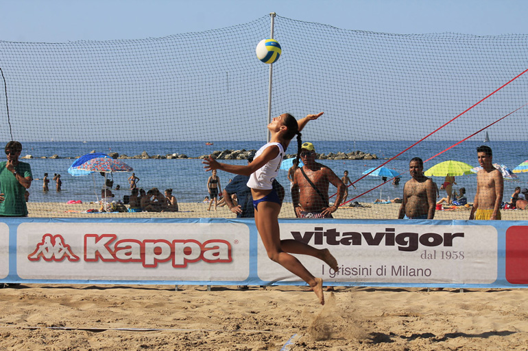 Nel secondo match, giocato alle 16,30 sul campo B, le “rosa”, blu nella prima gara e bianche nella seconda, offrono una buona prestazione ma i colpi inferti da Serena Ortolani e da Martina Guiggi, prossima giocatrice Pomì indoor, sono davvero pesanti e così la squadra del Team Saugella Monza fa sua la gara con un secco 2-0 e costringe le ragazze di Lucchi alla terza partita della giornata.