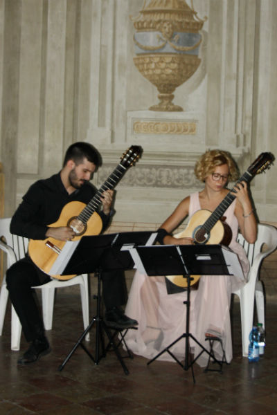 Dopo i saluti iniziali si è svolto l’itinerario guidato nelle sale storiche del piano nobile, nel cortile e nel giardino. Durante il percorso, il guitar-duo Fabiola Miglietti e Davide Moneta, ha deliziato il numeroso pubblico nei saloni monumentali con brani tratti dal repertorio classico per chitarra.