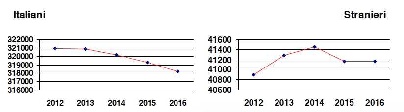 Dunque una provincia che non cresce più, dal punto di vista demografico, nemmeno grazie all’apporto dei nuovi arrivati, come mostra il rapporto statistico sulla popolazione aggiornato al 31 dicembre 2016, elaborato dall’amministrazione provinciale e pubblicato il 25 luglio.