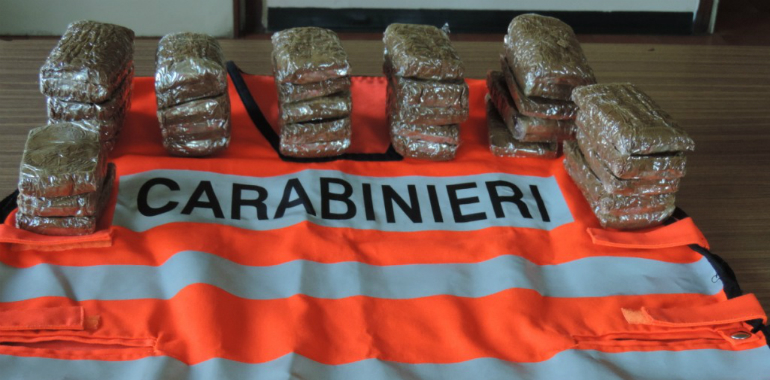 E’ quindi seguita una perquisizione personale, che ha consentito agli uomini dell’Arma di rinvenire un involucro opportunamente confezionato contenente 500 grammi circa di hashish suddiviso in cinque panette. La successiva ed immediata perquisizione domiciliare, eseguita presso l’abitazione del 27enne, ha permesso di rinvenire ulteriori 2,8 chili di hashish suddivisi in 28 panette, per complessivi 3,3 chili di stupefacente, il tutto sottoposto a sequestro.