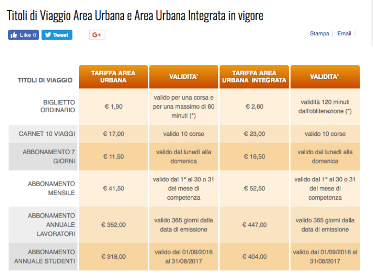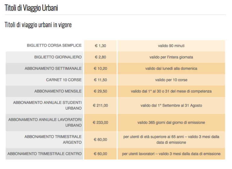 Tuttavia se si va invece a guardare la pagina dedicata ai costi dei titoli di viaggio, compare la dicitura “titoli di viaggio urbani”, dove è ancora indicata la tariffa di 1,30.