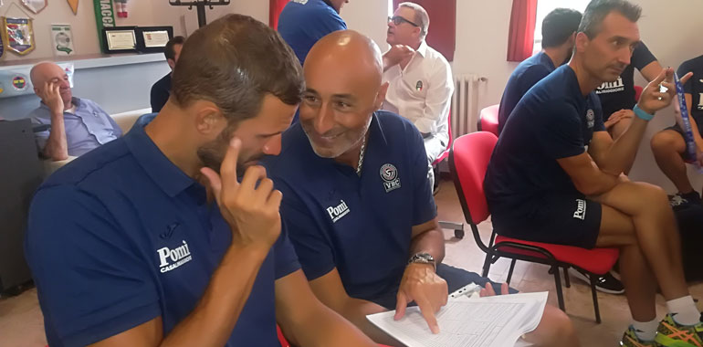 Vaia ha poi ricordato anche gli altri sponsor, 110 in totale, che ruotano attorno a questa società. “Un grazie a Claudio De Felice – ha rimarcato a tal proposito Boselli Botturi – per avere inserite nuove aziende: continuano a crescere e questo non può che farci piacere”. Poi dalle 10 spazio alle prime direttive di Abbondanza e Lucchi, concentratissimi sulla tabella della preparazione, molto dettagliata e puntuale, in attesa di ritrovarsi alle 16.30 con il saluto ai tifosi e il primo allenamento proprio in Baslenga. La Pomì riparte: ha messo il passato di lato, per focalizzarsi meglio sul futuro.