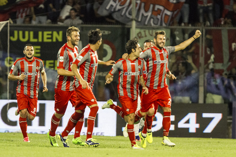 Qualche cambio per Tesser rispetto alla prima di campionato. Non c’è Ujkani impegnato in nazionale, al suo posto Ravaglia, sulla destra c’è Almici, rientrato dalla squalifica, dietro alle punte l’ultimo arrivato in rosa, Antonio Piccolo. Le squadre si studiano nei primi minuti senza grandi emozioni. Al 19′ Molina reclama una trattenuta in area ma l’arbitro fa proseguire. Neanche un minuto dopo la Cremonese va in vantaggio grazie ad una splendida giocata di Croce; il pallone finisce in rete toccato da Rizzato.