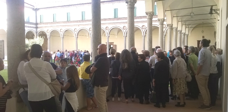 Da San Sigismondo a corso XX settembre e limitrofe, una domenica di festa in città, riscaldata da un sole quasi estivo e animata da numerosi eventi. Il gioiello architettonico e decorativo alle porte della città, è stato aperto al pubblico dalle suore domenicane di clausora che lo abitano in occasione dell’anniversario della dedicazione della chiesa, avvenuta il 15 settembre 1600. Molti i cremonesi, ma anche tanti da fuori città, che hanno colto l’occasione per entrare nel chiostro e visitare il refettorio (con l’Ultima cena di Tommaso Aleni di stampo leonardesco), solitamente chiusi al pubblico. A fare da ciceroni, i volontari degli ‘Amici di San Sigismondo’.