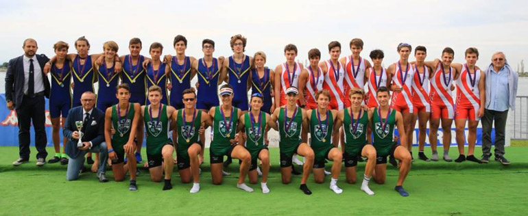Nel medagliere finale del team bianco verde: 14 ori, 4 argenti e 1 bronzo per un totale di 19 medaglie, per 182 punti che valgono il primo posto davanti a Friuli Venezia Giulia (117), terza la Toscana (96). Medaglia d’oro nel doppio Cadetti femminile per Anna Scolaro (Flora) in coppia con Fiorella Mengotti (Menaggio). Due argenti per la coppia Baldesio Valentina Kercuku e Susanna Pedrola alla prima esperienza nel due senza e per Tommaso Rossi nel quattro di coppia; un bronzo per Mario Guareschi in coppia con Josh Pala della Canottieri Cernobbio.