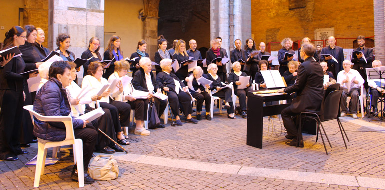 Un’occasione speciale perché questa città si faccia davvero comunità». Così la presidente dell’Ente Uliana Garoli oggi, domenica 24 settembre, in Cortile Federico II per l’evento La Musica della Vita. Il primo in calendario per la Festa della Fondazione Città di Cremona, che ha impegnato i professionisti del Coro Costanzo Porta insieme alle voci di alcuni anziani ospiti delle strutture di Cremona Solidale. In scaletta sotto la direzione di Antonio Greco brani come Moon River e Volare.