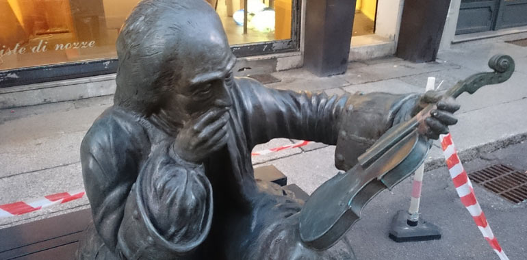 Stradivari seduto, finalmente sistemato il violino in vista della Festa del Torrone