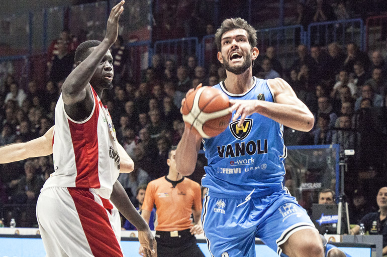 Il team di Menetti sigla due canestri con Julian Wright e sorpassa 69-68 a 22”. Perde palla in attacco la Vanoli Cremona e subisce il canestro di Markoishvili che vale il successo degli ospiti. Domenica sosta del campionato per l’impegno della nazionale di coach Sacchetti.