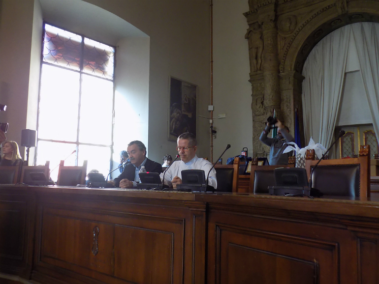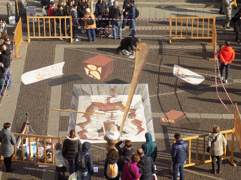 Personaggio del giorno, lo chef tedesco Ernst Knam, che prima ha incontrato gli studenti dell’istituto superiore Einaudi dando loro consigli d’arte pasticciera e reintepretando in maniera originale il tipico dolce cremonese, e poi nel salone dei Quadri di palazzo Comunale (fila per entrare) ha ricevuto l’incoronazione di “ambasciatore del Gusto”, quest’ultimo il tema dell’edizione 2017 della festa. Musica e intrattenimento in vari angoli delle strade con epicentro il palco di piazza del Duomo, dove nel pomeriggio confluirà il corteo storico (partenza ore 15,30 da via Solferino), per la consueta rievocazione del matrimonio ducale Francesco -Sforza – Bianca Maria Visconti. Sempre sul palco è stata premiata la società Juvi basket, storica società sportiva, fondata nel 1952 che quest’anno milita nel campionato di Serie C Gold Regionale. Tra i momenti istituzionali, la firma del protocollo di gemellaggio tra Cremona e Caltanissetta, altra città simbolo della produzione dolciaria.
