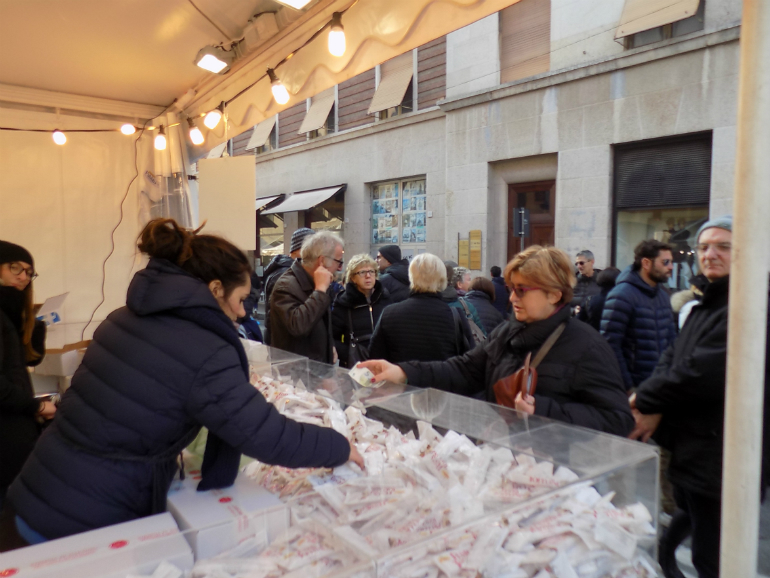 Folla delle grandi occasioni da questa mattina fin dall’apertura degli stand, per la festa del Torrone, seconda giornata dopo l’inaugurazione di sabato. Strade gremite, negozi e bar aperti, street food in piazza Roma e delizie dolci da ogni parte d’Italia, oltre che dai produttori locali, per un evento che si conferma di grandissimo richiamo. Super lavoro per le guide turistiche, che hanno condotto per il centro gruppi molto numerosi, con apertura della strada basolata romana di via Solferino.