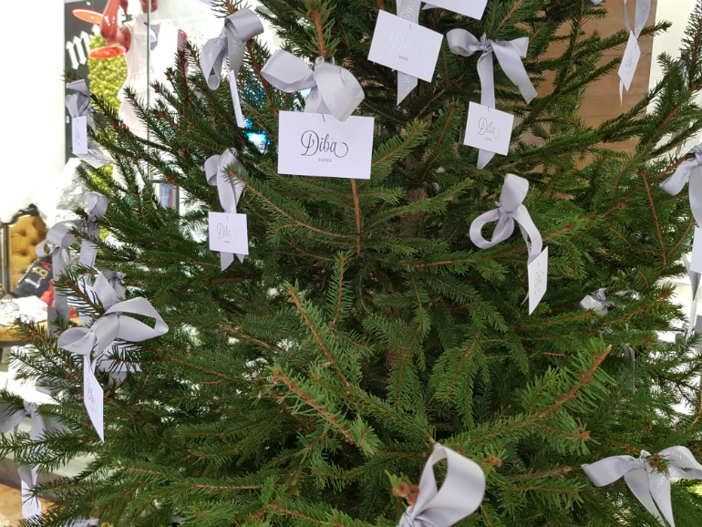 Sono pini decorati con piccoli oggetti brandizzati dai negozi che hanno aderito alle iniziativa, con nastrini logati che rendono l’atmosfeta il più nataliza possibile con un occhio anche al commercio.