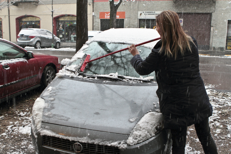 Città imbiancata, divertimento per tanti, ma pericolo gelicidio In azione nove spargisale