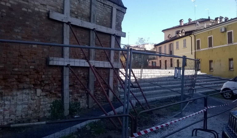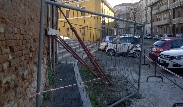 Ancora problemi al muro di cinta che circonda il centro di formazione professionale CrForma lungo via Cadore, un manufatto che già figurava nella mappa di Cremona del Campi del 1583. Allora segnava il confine del viridarium del monastero di San Pietro, oggi circonda il parcheggio dell’istituto di formazione professionale della Provincia. Un nuovo preoccupante segnale di deterioramento della struttura (dopo la ‘pancia’ che si era creata nel 2014, sistemata solo a inizio 2017) viene da una crepa diagonale che si è formata nella parte tra il cancello e il primo pilastro che sostiene l’inferriata che si affaccia a piazza san Pietro, con anche la caduta di alcuni mattoni. Una situazione che ha fatto intervenire la Provincia all’inizio di novembre, con la collocazione di puntelli di sostegno per evitare pericoli per i passanti. Una soluzione – tampone: infatti sarà necessario intervenire con un consolidamento vero e proprio per il quale la Provincia ha incaricato l’ingegnere strutturista Claudio Brambilla, che già aveva eseguito il progetto del precedente consolidamento terminato appena qualche mese fa.