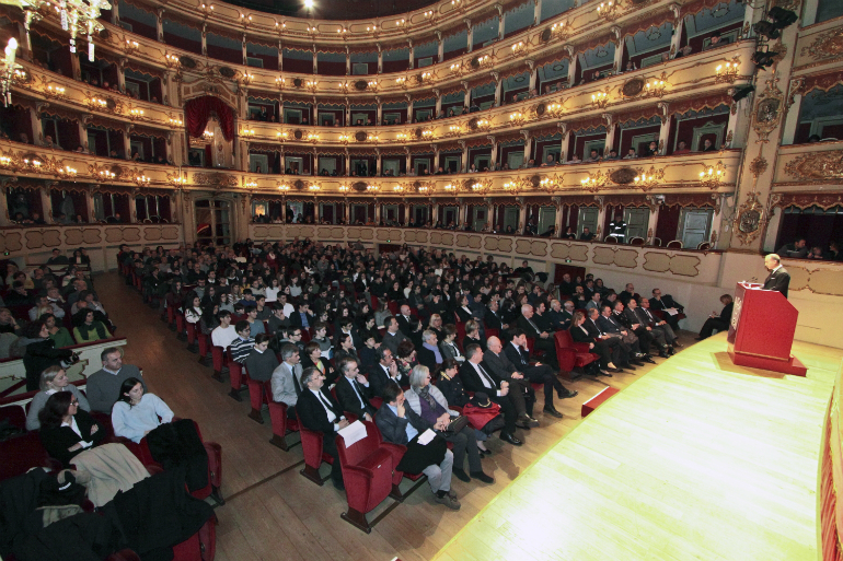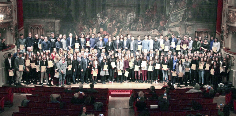 Il Teatro Ponchielli di Cremona è stato cornice, nella mattinata di domenica, della cerimonia di consegna delle borse di studio assegnate dall’Associazione Industriali della Provincia di Cremona agli studenti meritevoli figli di dipendenti delle aziende associate. In tutto i ragazzi premiati sono 127: 122 sono iscritti alle superiori per l’anno scolastico 2017/2018 e figli di dipendenti di aziende iscritte all’Associazione Industriali Cremona e sono premiati per superato la media dell’8 nell’anno scolastico precedente (gli iscritti al 1° anno devono aver conseguito <10 decimi> agli esami di licenza media); 5 sono iscritti all’università per l’anno accademico 2016-2017, sempre figli di dipendenti di aziende associate, che hanno una media superiore ai 26/30 (gli iscritti al 1° anno devono aver conseguito <100 centesimi> all’esami di maturità).