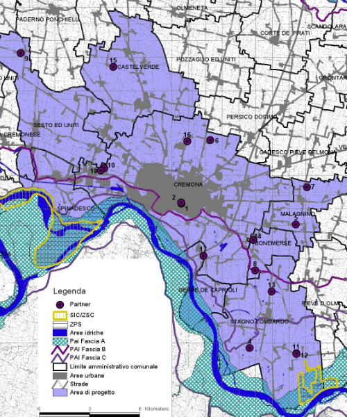 L’accordo di partenariato coinvolge il PLIS del Po e del Morbasco, attraverso il Comune di Cremona quale ente capofila, quindi i Comuni di Gerre de’ Caprioli (impegnato in un intervento sul proprio territorio), Bonemerse, Castelverde, Sesto ed Uniti, Spinadesco, Stagno Lombardo e Malagnino. La scelta del PLIS come capofila è motivata dal ruolo che tale organismo ha all’interno del progetto, in particolare la cura e la preservazione di ambiti naturalistici, paesaggistici, architettonici oltre alla promozione di attività produttive a basso impatto ambientale, anche nelle aree esterne al capoluogo. Oltre a tali aspetti, il progetto mira a potenziare e valorizzare le attività agrituristiche, così da accrescere la fruizione e la conoscenza delle zone rurali che si trovano nelle vicinanze di Cremona, agendo anche attraverso il coordinamento con gli organi istituzionali, le associazioni del territorio e gli operatori economici. L’ente di formazione accreditato scelto, previ accordi con gli altri soggetti ammissibili presenti nell’area, è Servimpresa, Azienda Speciale della Camera di Commercio di Cremona, con cui sono previsti corsi scelti sulla base delle finalità del progetto e di accordo.