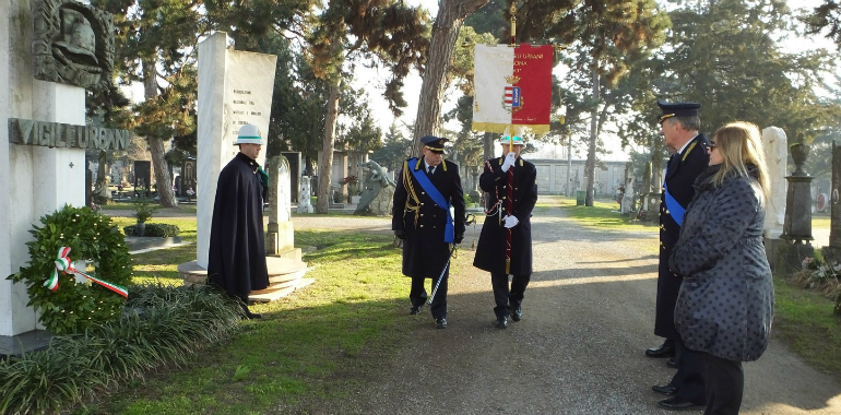 Al termine della messa gli agenti in alta uniforme, preceduti dal labaro del Corpo, hanno accompagnato l’assessore Barbara Manfredini ed il Comandante Pierluigi Sforza al Civico Cimitero per deporre una corona d’alloro alla stele dedicata ai colleghi defunti.