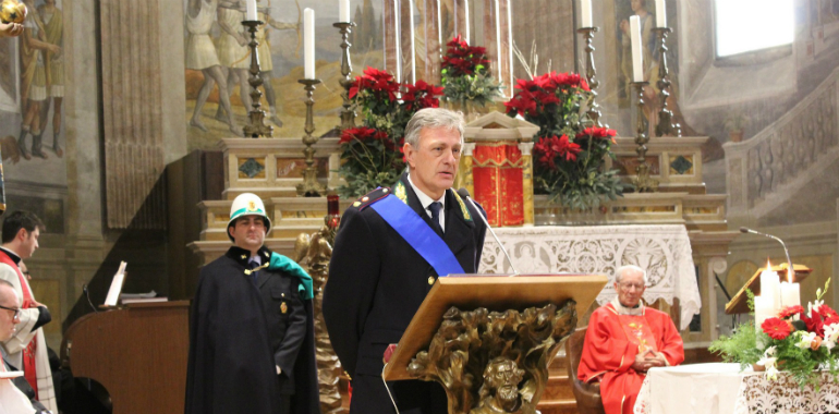 Nel corso della funzione l’offerta dei doni all’altare è stata fatta dal Sovrintendente Simona Caravaggio e dall’Agente scelto Roberto Volpari, mentre la tradizionale offerta del cero e del casco è stata affidata rispettivamente al commissario Giorgio Bodini e all’Agente scelto Claudio Barbieri. Le letture, nel corso della celebrazione, sono state affidate al Sovrintendente Simona Caravaggio e al Commissario Daniele Rodondi. La preghiera finale è stata letta dal Vice Comandante Roberto Ferrari, mentre il Comandante Pierluigi Sforza, ha salutato e ringraziato tutti i presenti sottolineando l’importanza degli agenti della Polizia Locale nel loro contatto quotidiano con le persone, definendoli “custodi dei cittadini”.