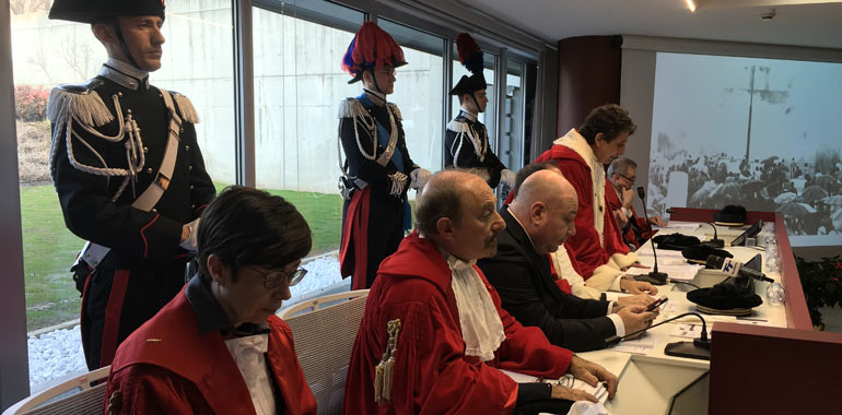 La cerimonia dell’anno giudiziario si è tenuta nella nuova sala polifunzionale intitolata alla memoria della presidente della corte d’appello Graziana Campanato, scomparsa nel 2015, ed è stata aperta dall’intervento del presidente della corte d’appello Claudio Castelli, che prima di cominciare ha ricordato la recente scomparsa del giudice Enzo Plate’, ex sostituto procuratore di Cremona ed ex presidente della seconda sezione penale della corte d’appello di Brescia.