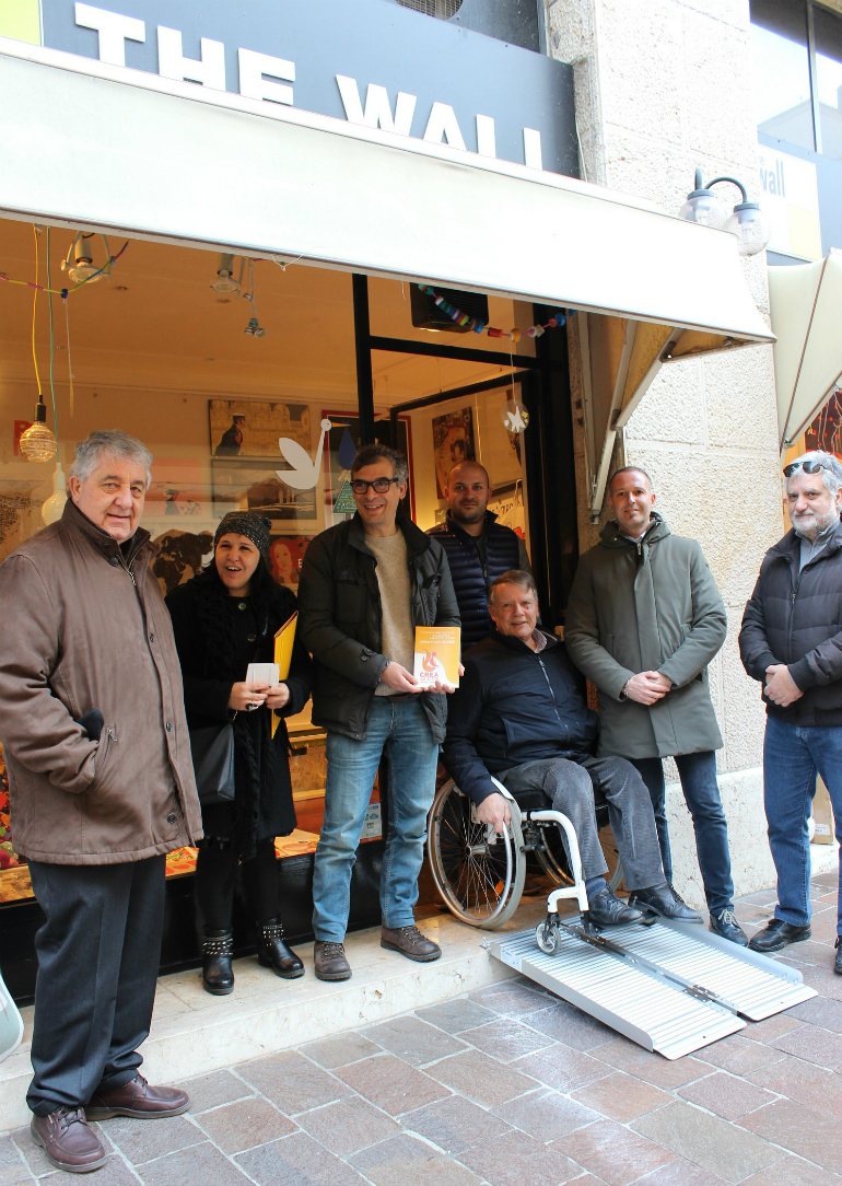 Il progetto consiste nell’offrire in comodato d’uso gratuito uno scivolo pieghevole e removibile ai negozi con barriere architettoniche (gradini). Gli scivoli sono sistemi di rampe mobili e trasportabili per consentire a persone in carrozzina di superare dislivelli con o senza l’aiuto di altri. Poco ingombranti e facili da trasportare rappresentano un valido strumento d’aiuto per la vita quotidiana.