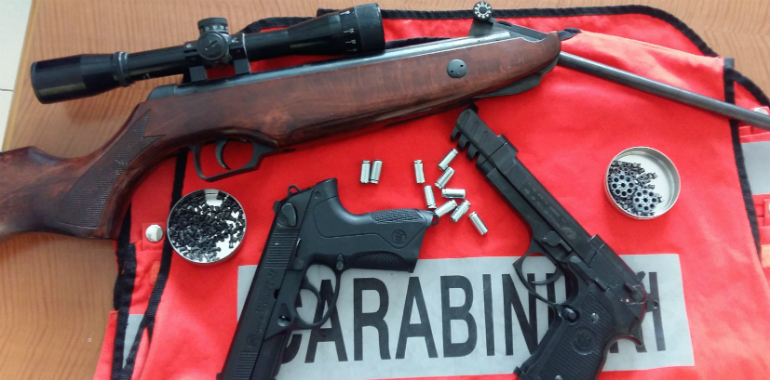 A seguito della denuncia i militari si sono recati presso l’abitazione dell’uomo, un autista di autobus, per interrogarlo. Egli ha negato le accuse, ma da una successiva perquisizione domiciliare i vcarabinieri hanno rinvenuto, occultate, due pistole a gas e una carabina ad aria compressa detenuta illegalmente. Le armi sono state sequestrate.