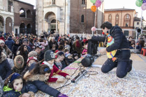 Un ricco programma di animazione, a cura di Lotus For Kids, ha animato la piazza del Comune con baby dance, balli di gruppo, creazione di palloncini modellabili, il balletto di Mary Poppin’s, filastrocche e musica, gruppi di giocoleria e percussionisti. Momento clou del pomeriggio è stato l’appuntamento con la ”La Vecia”, che come da tradizione è stata colpita con palline grigie e rosse.