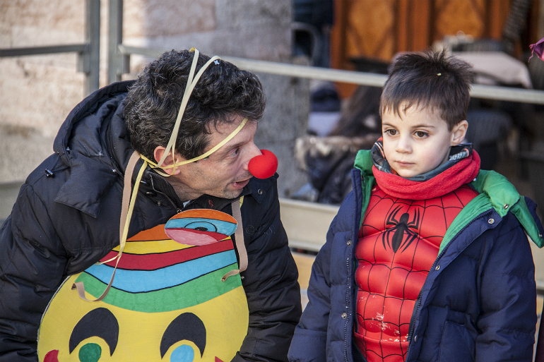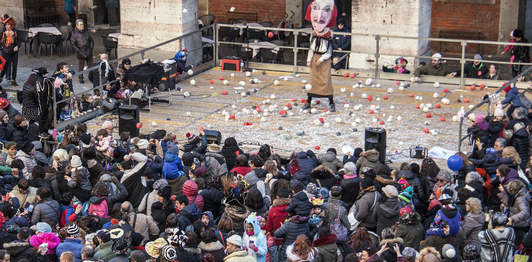 Un ricco programma di animazione, a cura di Lotus For Kids, ha animato la piazza del Comune con baby dance, balli di gruppo, creazione di palloncini modellabili, il balletto di Mary Poppin’s, filastrocche e musica, gruppi di giocoleria e percussionisti. Momento clou del pomeriggio è stato l’appuntamento con la ”La Vecia”, che come da tradizione è stata colpita con palline grigie e rosse.