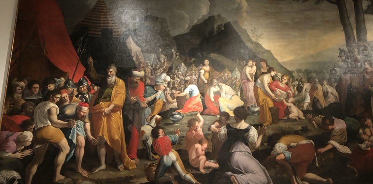 “La raccolta della manna” di Jacopo Ferrari nella sala San Domenico del Museo Civico. Una spiacevole sorpresa, lascito di qualche maldestra manovra nei lavori di smantellamento della mostra sul Genovesino. Questa mattina i responsabili della Soprintendenza hanno effettuato un sopralluogo per rendersi conto del danno arrecato e per autorizzare il restauro della tela che misura 4 metri e 70 per 7 metri e mezzo. Lo sconcerto è grande e suscita altri interrogativi sulla consuetudine di questa amministrazione di proporre le grandi mostre negli spazi ristretti delle sale museali dove qualche manovra maldestra può provocare danni irreparabili alla ricca collezione artistica di Palazzo Affaitati. Le grandi mostre si sono sempre tenute in Santa Maria della Pietà dove lo spazio è certamente più adatto alle grandi rassegne come sempre accaduto in passato pensiamo a quella sul Piccio, sui Campi, a Bartolomeo Manfredi o a Sofonisba Anguissola. E’ vero che chi fa sbaglia e chi non fa niente non sbaglia mai – come si sono affrettati a far sapere dal museo – oppure per dirla in cremonese “chi ne mèena ne straboeuca” ma in un museo servono senza dubbio maggiori accortezze rispetto ad altri luoghi. La grande tela di Jacopo Ferrari è datata 1649 e proviene dalla chiesa di San Francesco e sembra ispirata alla Distribuzione dei pani e dei pesci del Genovesino. Ferrari è nato a Cremona da famiglia mantovana. Diverse sue opere sono conservate nella chiesa parrocchiale di San Pietro.