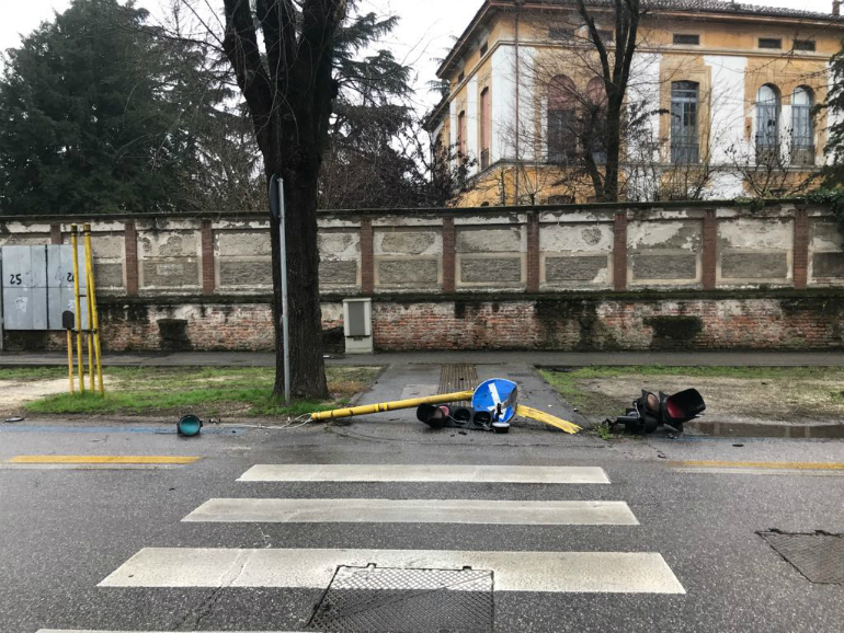 Abbatte un semaforo in viale Trento Trieste, impianto fuori uso in tutta la via