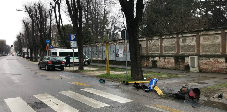 Abbatte un semaforo in viale Trento Trieste, impianto fuori uso in tutta la via