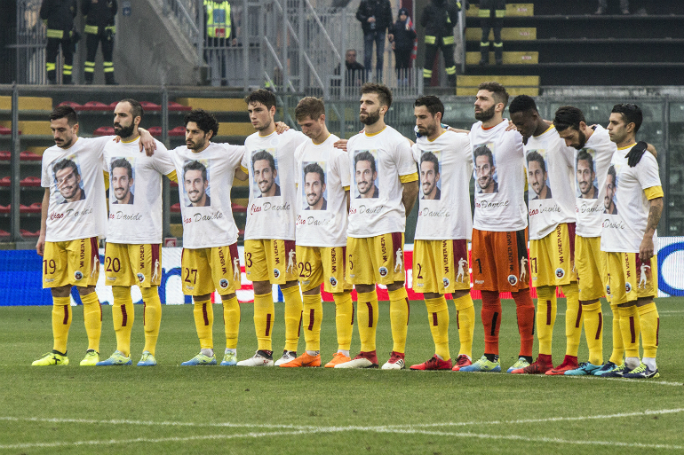 PRIMO TEMPO – Lo stadio Zini ricorda Davide Astori con un minuto di silenzio particolarmente sentito e coinvolgente. Mentre sui led scorrono le immagini dell’ex grigiorosso, dalla curva sud Erminio Favalli parte un lungo applauso a cui si unisce tutto lo stadio.