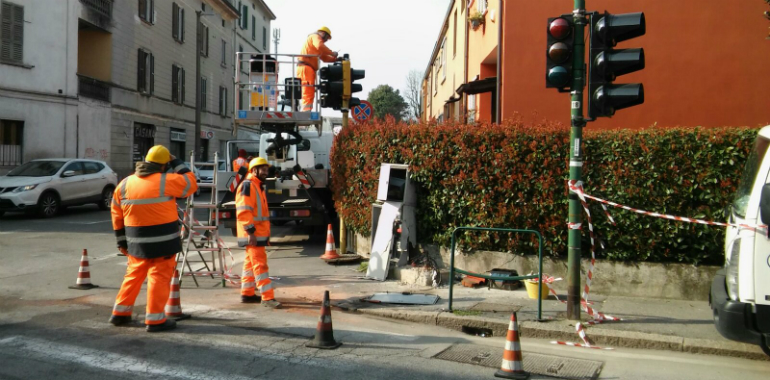 Via Castelleone, tecnici sul posto per ripristino semaforo danneggiato
