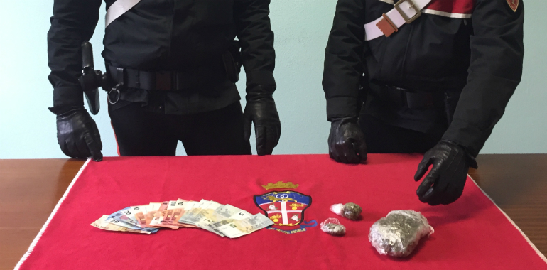Dopo la terza cessione i militari sono intervenuti, ma il pusher ha tentato di dileguarsi, fuggendo a piedi, e ha opposto resistenza spintonando uno dei miliari. I carabinieri sono però riuscito ad avere la meglio su di lui mettendogli le manette intorno ai polsi. Occultati nella tasca dei pantaloni, lo spacciatore nascondeva altre due dosi di marijuana, contenuti in cellophane, per un totale di 10 grammi, nonché 50 euro ritenuti provento di spaccio. Una successiva perquisizione domiciliare ha consentito inoltre di rinvenire altri 40 grammi della stessa sostanza, già pronta per lo smercio al dettaglio, occultata nella camera da letto, all’interno di una borsa.