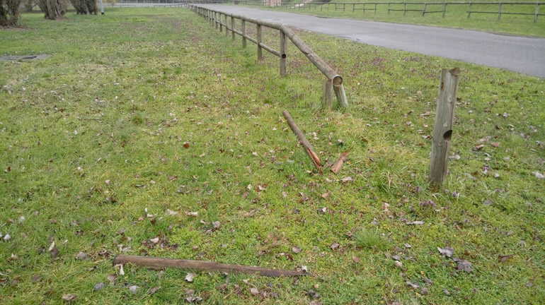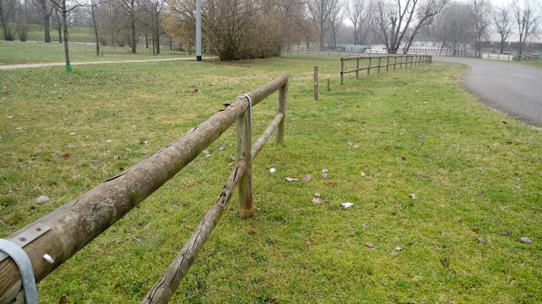 Incuria e degrado alla pista ciclabile: staccionata a pezzi