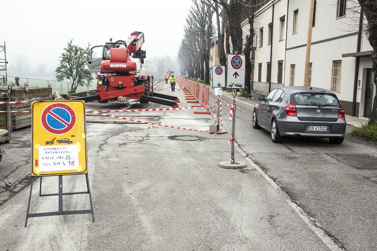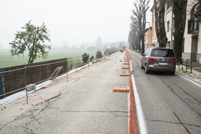 La chiusura parziale al traffico di via del Sale, inizialmente non prevista, si era resa necessaria per garantire dei livelli di sicurezza maggiori durante il cantiere. Il tratto interessato alla chiusura è quello corrispondente alla scarpata verso il piano campagna, dove la sede stradale deve essere ampliata per fare spazio alla ciclabile. A questo scopo sarà necessario realizzare un muro di contenimento e aggiungere terreno.