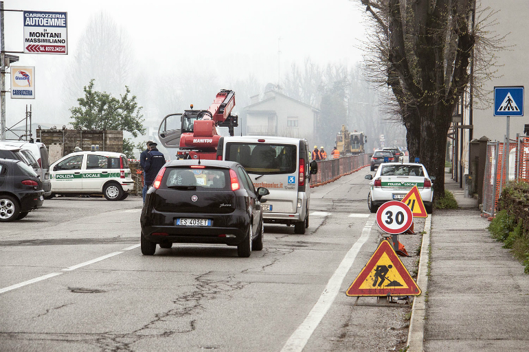 Sono entrati nel vivo i lavori alla pista ciclabile in via del Sale, partiti appena dopo Pasqua. Il cantiere è ormai completamente allestito e non mancano i disagi per la circolazione, a fronte del fatto che parte della strada è percorribile soltanto a senso unico alternato e un’altra parte è completamente chiusa. La Polizia Locale ha presenziato il cantiere dalla prima mattina, per gestire il flusso veicolare, in quanto il traffico si accumula tra via Giordano, viale Po e la stessa via del Sale. Per fluidificare la marcia di auto e pullman (numerosi quelli che negli ultimi tre giorni erano diretti al teatro Ponchielli con le scolaresche di OperaDomani) sono stati allungati i tempi del verde ai semafori di viale Po, dove sono pure state posizionate altre spire per conteggiare i passaggi. Non ancora attuata, invece, un’altra misura prevista dall’ordinanza, ossia l’inversione del diritto di precedenza tra via Giordano e piazza Cadorna, anche questo funzionale a non creare un accumulo di auto tra porta Po e il viale.
