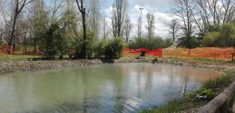 Tornata l'acqua nel laghetto del parco al Po: ora si attende sistemazione staccionata
