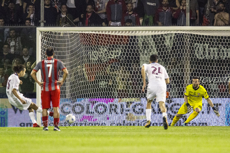 La Cremonese parte con il piglio giusto, ci crede e costruisce gioco, la Salernitana chiude gli spazi e si affida alle ripartenze. Alla mezz’ora passa però la Salernitana con Minala che corregge in rete il colpo di testa di Monaco sugli sviluppi di un corner. Passano 4’ e la Cremonese rimette i giochi in parità, una punizione di Piccolo trova la testa di Canini che segna. Al 36’ l’arbitro assegna un calcio di rigore alla Salernitana per un fallo di Camara su Rosina. Va Kiyine dal dischetto ma Ujkani respinge il pallone che viene intercettato da Bocalon che colpisce l’incrocio dei pali. La partita cresce di intensità ma il primo tempo si chiude comunque in parità dopo 2’ di recupero.