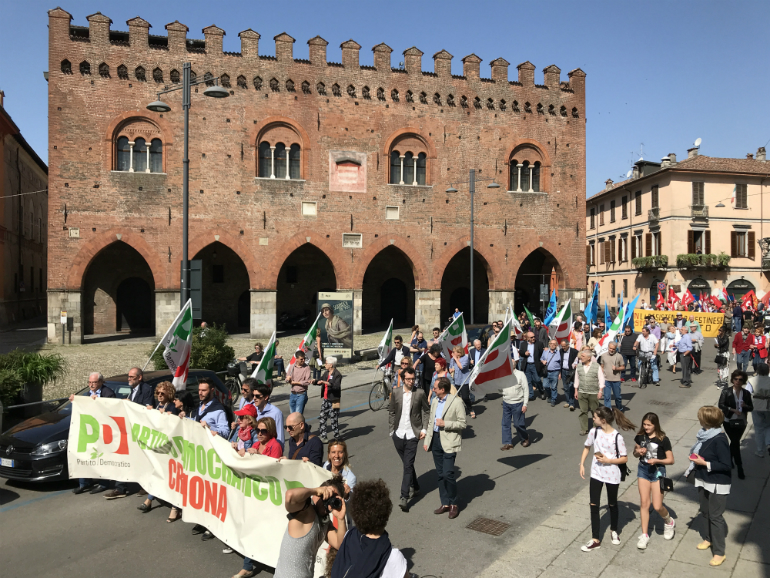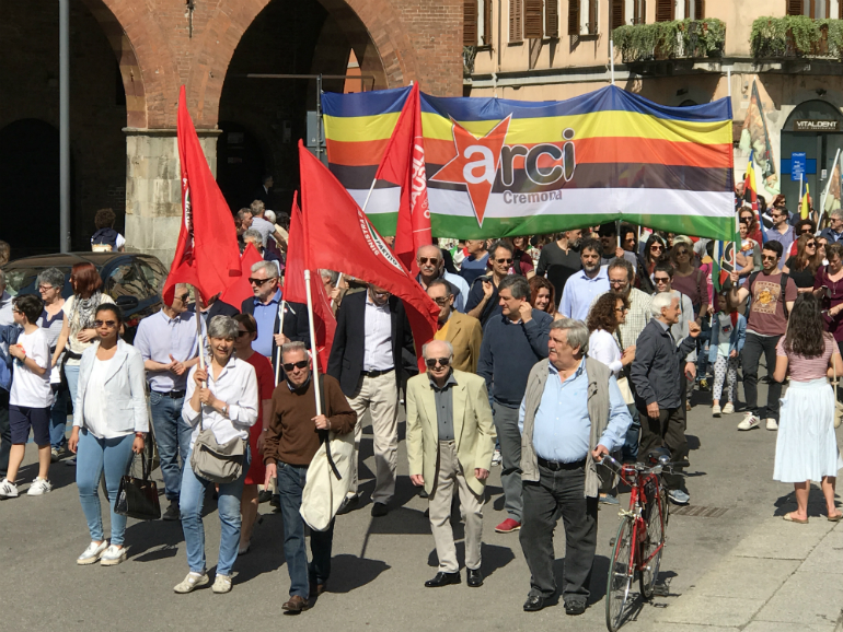 AGGIORNAMENTO ORE 11,40 – E’ in pieno svolgimento la manifestazione istituzionale per il 25 aprile, anniversario della Liberazione, con i discorsi ufficiali delle autorità in una piazza del Comune gremita. Dagli esponenti dl centro sociale Dordoni si sono levati attacchi al sindaco Galimberti: “Conosciamo bene questa giunta e Galimberti” hanno detto. “Ci hanno accolto subito, quando si sono insediati, con due sgomberi, mentre difendevano due famiglie cremonesi dallo sfratto. Ma soprattutto, Galimberti era a Mosca a parlare con il braccio destro di Putin. In Italia tanti si esprimono a sostegno del popolo della Siria del nord. Vergognoso che invece lei, sindaco, sia andato a ascoltare musica con chi uccide i bambini in Siria del Nord”.