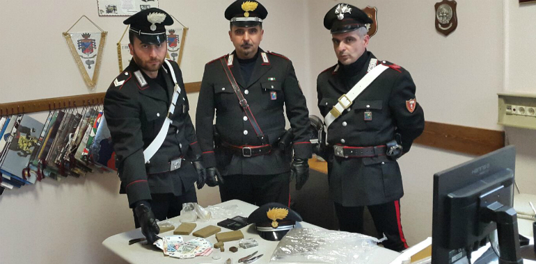 Arresto e sequestro di quasi 1kg di sostanza stupefacente. E’ il risultato di un controllo effettuato il 1 maggio dai Carabinieri di Cremona in un bar della zona Borgo Loreto, dove da qualche tempo era stata segnalata la possibilità di reperire droga. In particolare, gli uomini dell’Arma si sono concentrati su F.G.C, nato a Salsomaggiore e residente in via Legione Ceccopieri, noto per precedenti anche in materia di stupefacenti, che stava giocando alle macchinette. L’uomo, alla vista dei militari, cercava di eludere il controllo allontanandosi, ma fermato chiedeva con una battuta se era stato riconosciuto per essere il nipote di una famosa cantante originaria della città del Torrazzo. Avuta come risposta che era noto per i suoi trascorsi travagliati, ammetteva spontaneamente di detenere un involucro contenente gr.4 di hashish, per uso personale. Ma avendo con sé una somma di denaro pari a ben 400 euro in banconote di piccolo taglio ed essendo disoccupato, i militari decidevano di perquisirne l’abitazione, poco distante. Veniva così scoperto un vero e proprio market della droga. Nascosti dentro un mobile della cucina c’erano 4 stecche di hashish del peso complessivo di gr. 86 e un pezzo di sostanza solida di colore marrone chiaro del tipo eroina di 10 grammi. All’interno del guardaroba della camera da letto ben occultati in mezzo a vari capi d’abbigliamento c’erano invece 4 panetti di hashish avvolti nel cellophane per un peso complessivo di gr.410; un sacchetto di cellophane contenente stupefacente del tipo marijuana di grammi 110; mentre all’interno del comodino della stanza da letto venivano rinvenuti 4 coltellini di piccole dimensioni parzialmente intrisi di hashish ed anneriti all’estremità, verosimilmente utilizzati per dividere lo stupefacente oltre a un bilancino elettronico di precisione, utilizzato per pesare lo stupefacente.