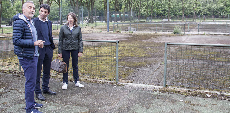 Saranno pronti già da luglio i nuovi campi da tennis, beach volley e padel di fianco alla piscina comunale, affidati dal Comune attraverso una convenzione alla società CremonArena di Enrico Pighi e Laura Golarsa, campionessa di tennis negli anni Ottanta. Questo pomeriggio si è svolto un sopralluogo congiunto tra amministratori comunali (sindaco Galimberti e assessori Andrea Virgilio e Mauro Platé) e i nuovi gestori per illustrare cosa sorgerà in questo spazio che risorge dopo decenni di abbandono e che si propone di divulgare tennis e sport correlati attraverso corsi per tutti i livelli e tutte le tasche.