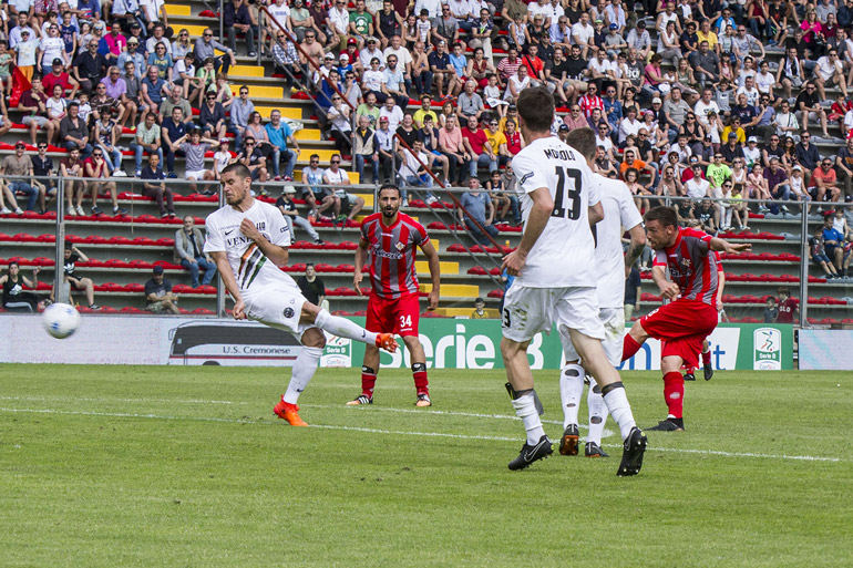 Torna in campo la Cremonese ben determinata a ritrovare il vantaggio, Perrulli con i suoi cambi di direzione trae in inganno la difesa dei veneti che lo ferma in area. Rigore che Piccolo trasforma riportando in vantaggio i grigiorossi. Al 7’ Litteri colpisce un palo sugli sviluppi di un corner. Al 25’ Macek dal centro dell’area impegna Audero in due tempi. La Cremonese soffre ma ci mette grinta e carattere e mantiene il pallino del gioco. Al 35’ Pesce dalla distanza segna il terzo gol grigiorosso. Un minuto Brighenti sfiora il palo. Il finale è una festa, a tempo scaduto 4-1 di Arini e poi Macek porta a 5 le marcature per una Cremonese che saluta il pubblico dello Zini con un bellissimo 5 a 1 che vuol dire salvezza.