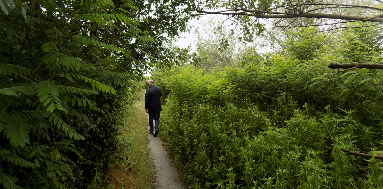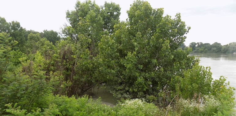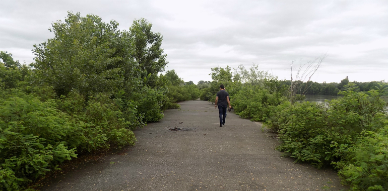 La lanca Livrini praticamente non esiste più. Quello che poteva essere il porticciolo d’attracco ideale per le imbarcazioni fluviali proprio a ridosso del parco del Po e delle rinnovate Colonie Padane è reso impraticabile dalla vegetazione cresciuta sulle sponde e dall’accumularsi di rifiuti e sabbia, con una manutenzione ormai inesistente. Il viaggio attraverso cui ci accompagna Paolo, un pensionato con l’hobby della pesca, lungo i 400 metri del pennello che delimita la lanca, è un percorso avventura tra quel che resta del vecchio asfalto ridotto a chiazze e terriccio, pozzanghere, cumuli di rifiuti, residui di fuochi e rami che hanno invaso quello che una volta era un sentiero ciclopedonale, formando veri e propri tunnel per addentrasi nei quali occorre accovacciarsi sulle ginocchia . “Ecco, qui c’era l’attracco della Serenella, erano due zattere agganciate con sopra un bar”, ricorda. “Negli anni Sessanta era un posto piuttosto in viga”. Oggi, dal punto in cui dall’asfalto sbuca l’anello in ferro a cui si legava la fune, non si riesce nemmeno a vedere il fiume: tutta la scarpata è una selva di arbusti resi rigogliosi dall’ultimo temporale. E’ lungo questo tratto che fino a qualche anno fa coltivavano il loro hobby i pescatori come Paolo, ma adesso “come è possibile arrivare fin qui con le canne?”. Alla fine del pennello, il punto in cui l’acqua del fiume entra nella lanca è quasi completamente ostruito da un isolotto su cui sono cresciuti arbusti e piante di gelso. Impossibile raggiungere lo spiaggione poco più a valle, dove ci si poteva arrivare a piedi.