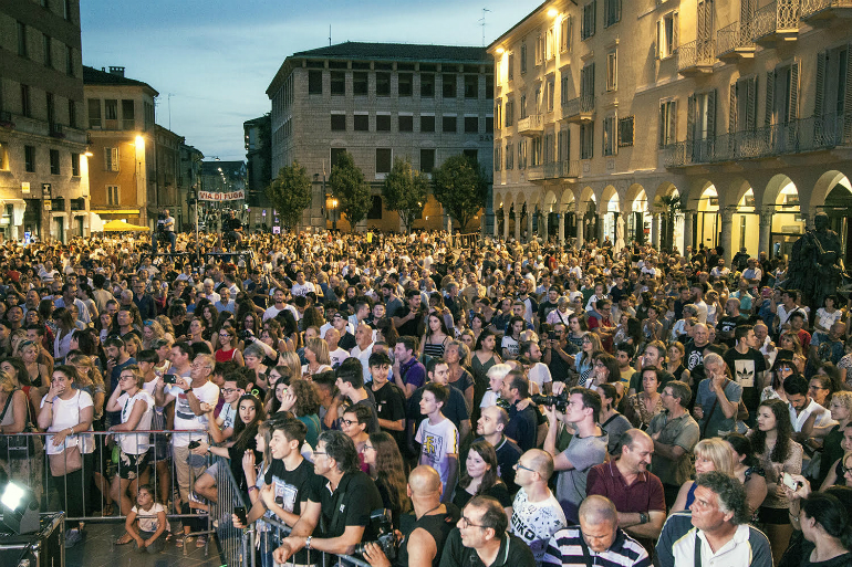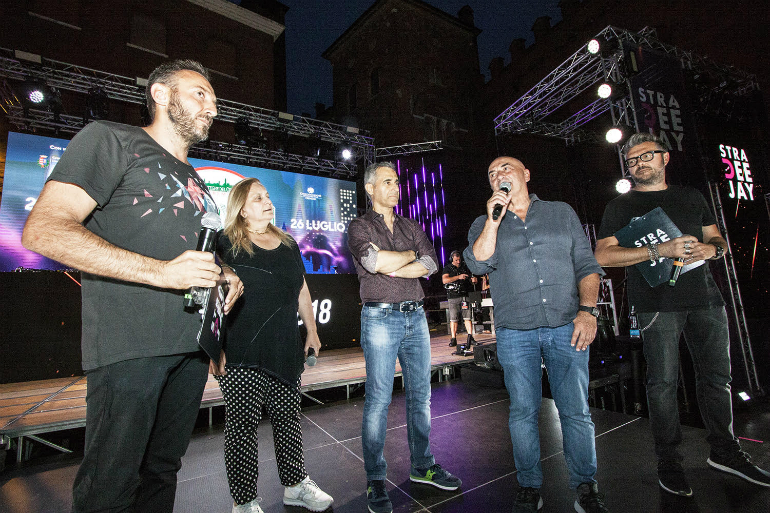 Piazza Stradivari gremita per la notte di StraDeejay, terza edizione della manifestazione ideata da Andrea Marchesi e Michele Mainardi, voci cremonesi di Radio DeeJay, quest’anno rinnovata con la formula del contest che ha visto sfidarsi nelle due settimane precedenti 36 dj locali. 10 quelli che giovedì sera, solstizio d’estate, si sono presentati sul palco davanti a migliaia di persone, con musica revival e non solo: Gianluca Boccasavia, Andrea Carubelli, Andrea Omodei, Giulio Gennari, Federico Belli, Emilio Palanti, Davide Monteverdi, Giovanni Loda, Davide Monteverdi, Marco Zigliani e Ronnie Play. Ospiti speciali i dj del “Deejay Time” al completo: Albertino, Fargetta, Molella e Prezioso.  Bar affollati e anche molti negozi aperti, per una serata che era iniziata con un’anteprima – aperitivo alle 18 e poi è entrata nel vivo dalle 21 in avanti, per finire con la silent disco, a cui Cremona a risposto con grande entusiasmo.