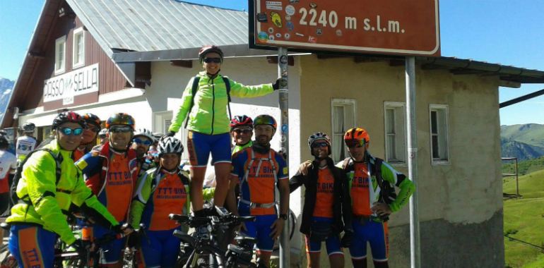 Il gruppo di Cremonesi, TTT-Bike Quelli della Domenica mattina, composto da otto uomini e due donne con età variabile dai 35 ai 63 anni, partiti da Plan De Gralba (Selva di Valgardena), per proseguire lungo il Passo Sella, il Passo Pordoi, il Passo Campolongo e il Passo Gardena.