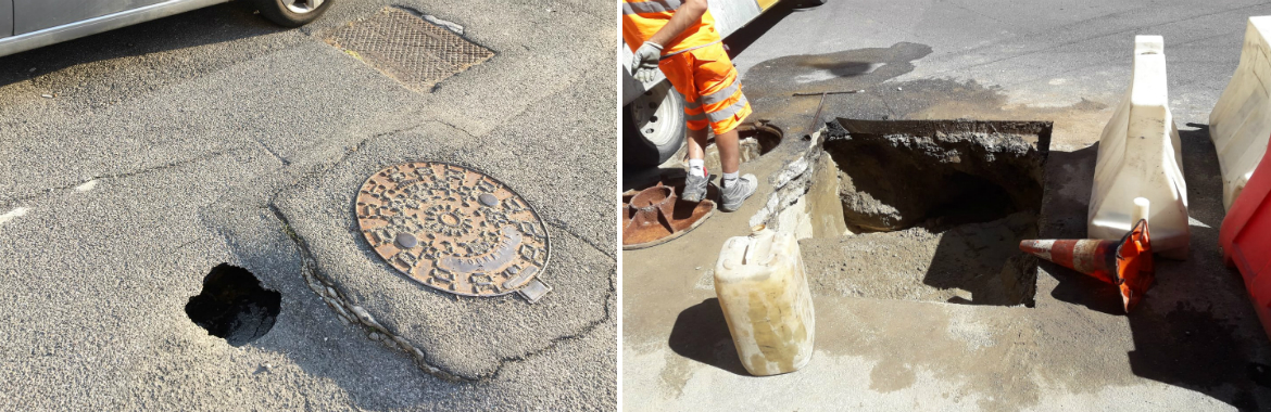 In realtà pare che l’intervento di stamattina non abbia rivelato nulla di particolarmente preoccupante. Il cedimento si è creato per un’erosione dovuta ad un anomalo funzionamento del collettore che si trova in questo punto di ispezione e dove confluiscono vari scarichi fognari.